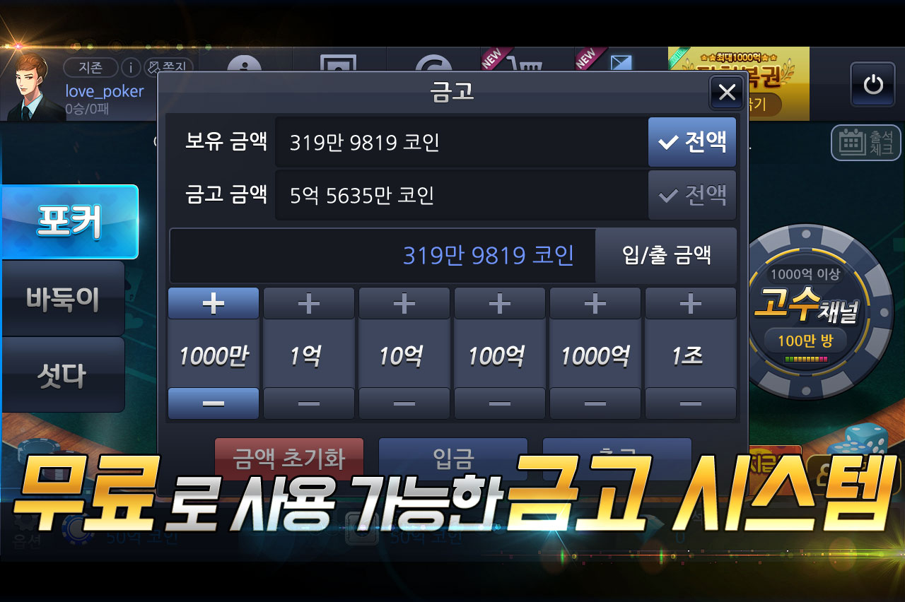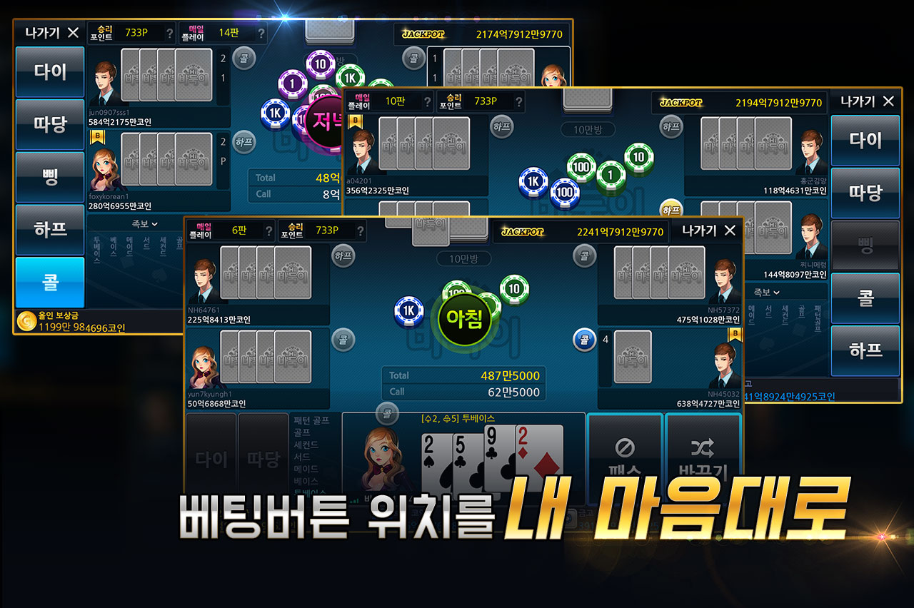 스마트폰에서 네트워크로 유저들과 같이 즐기는 포커, 바둑이, 섯다, 맞고 게임입니다.