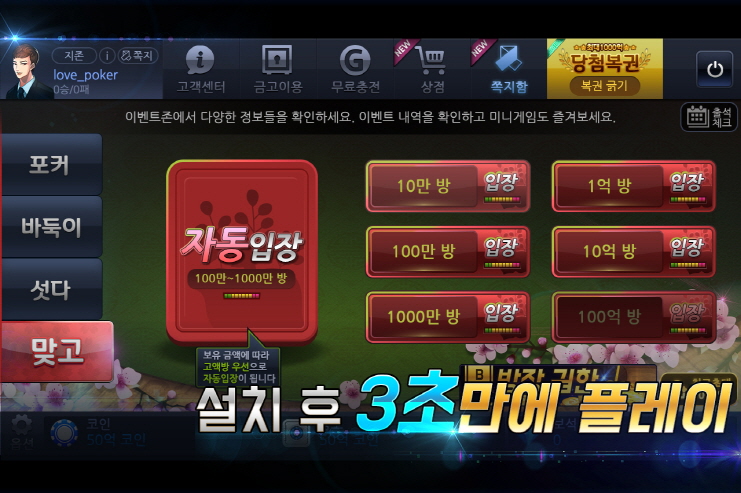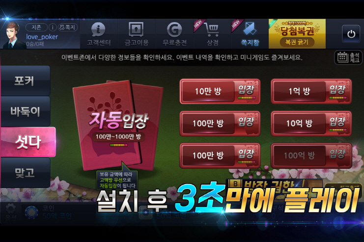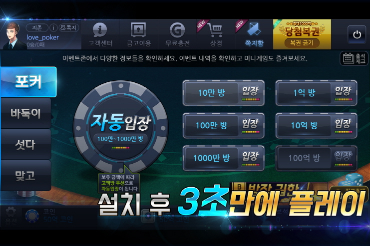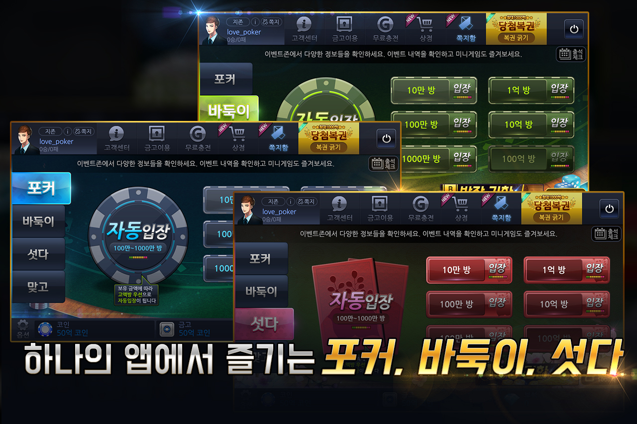 하나의 앱에서 즐기는 포커, 바둑이, 섯다, 맞고