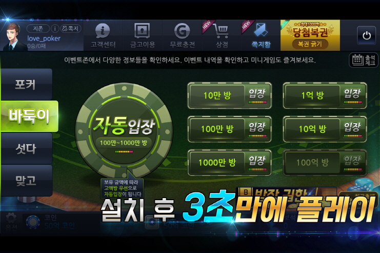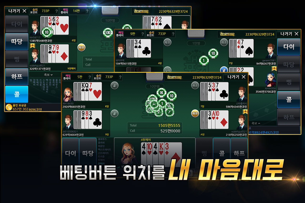 하나의 앱에서 즐기는 포커, 바둑이, 섯다, 맞고